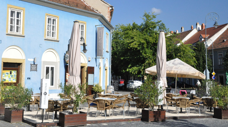 A város hangulatos főterén található éttermünk tavasztól késő őszig egy kellemes, napfényes terasszal várja a betérőket, ahol a gasztronómiai élmények a város látványával is párosulnak.